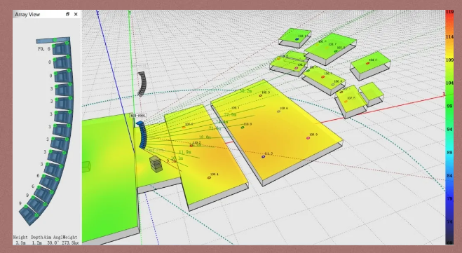 在正式進場安裝之前,我們提前通過Resolution建模軟件仔細分析模擬了揚聲器安裝點位、角度、聲場覆蓋等,為現(xiàn)場安裝及調試提供了更為具體的基礎和更多的時間。實際安裝過程中,揚聲器在聲學結構GRG上3D建模定位一次安裝完成,實現(xiàn)了精準的覆蓋和良好的線陣耦合,為后續(xù)調試打下堅實的基礎。最終調試的結果和前期分析模擬完全吻合,