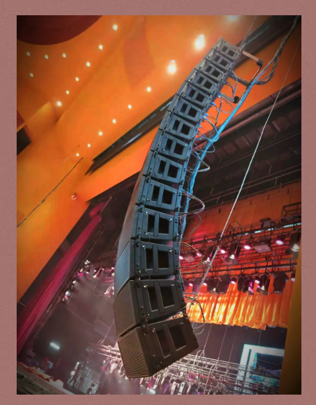 主擴系統(tǒng)采用左中右三組線陣列揚聲器結合覆蓋的方式,其中左右聲道每組吊掛14只