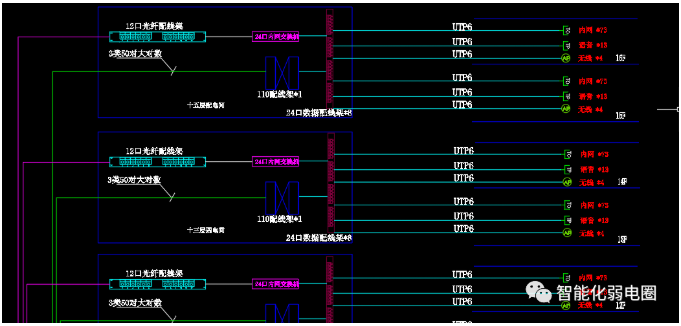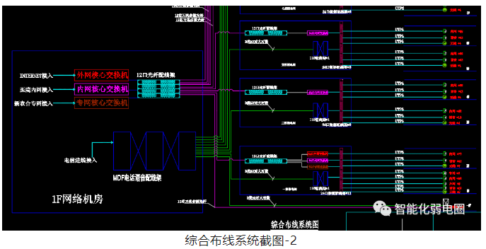 綜合布線是智能化弱電系統(tǒng)的基礎,包含工作區(qū)子系統(tǒng)、水平子系統(tǒng)、管理間子系統(tǒng)、垂直干線子系統(tǒng)、設備間子系統(tǒng)、建筑群子系統(tǒng)。