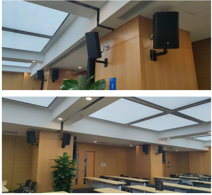 在報告廳中后場兩側。每只音箱的輻射角度都經過專業且細致的調整,確保室內聲場覆蓋均勻。這都得益于TURBOSOUND在產品設計方面做到真正的精益求精。