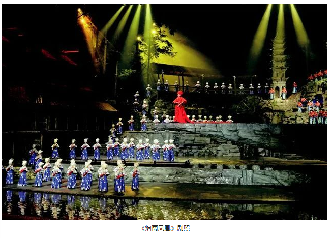 其實(shí),這個(gè)方法之前也曾多次使用。不過這次的實(shí)踐讓筆者發(fā)現(xiàn),很多情況下聲音的獨(dú)特效果可以根據(jù)舞美場(chǎng)景,甚至利用舞美裝置的特性來實(shí)現(xiàn)。這一點(diǎn)以后也可以繼續(xù)跟音響師們研究探討,從中發(fā)現(xiàn)、挖掘并再現(xiàn)出契合戲劇創(chuàng)意的聲音效果。例如,國(guó)外有的錄音棚用老教堂或者工廠廠房改造,以得到想要的聲音效果,包括好萊塢的電影錄音。這具有無限拓展的可能性,因?yàn)槊恳环N聲音在不同的空間都會(huì)是不同的,關(guān)鍵也在于音響師是否有主觀創(chuàng)新的想法,畢竟對(duì)于多數(shù)戲劇音響設(shè)計(jì)來說,音響師首先要保證的是戲劇對(duì)聲音的基本要求,然后才是個(gè)性化需求。另外,音響師對(duì)舞美空間的解讀也尤為重要,舉個(gè)例子,幾年前參加湖南鳳凰的《煙雨鳳凰》實(shí)景演出項(xiàng)目的舞美設(shè)計(jì),景的縱深有50 m多,一側(cè)是用于造景的山,一側(cè)是吊腳樓,中間風(fēng)雨橋作為兩者的連接,遠(yuǎn)處縱深就是利用實(shí)景的山和樹林。該劇的音響師就根據(jù)這樣一個(gè)悠遠(yuǎn)的空間環(huán)境,制造從左到右的聲像差,形成由遠(yuǎn)及近的聲音效果,的確讓觀眾感受到了空間距離上聲音傳遞效果,十分契合舞美所營(yíng)造出的氛圍。
