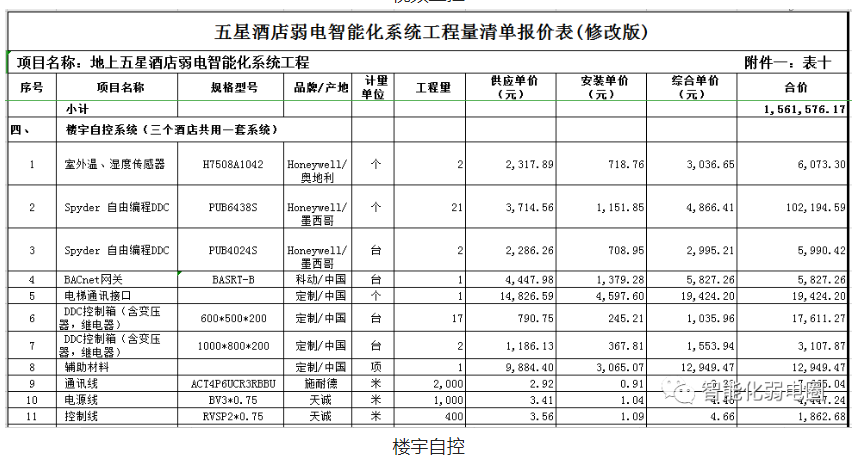 之前一直有籌備建設酒店的朋友說,不知道酒店智能化弱電建設,現(xiàn)在以酒店為例,更新一套智能化弱電報價清單。酒店弱電系統(tǒng)非常齊全,有綜合布線、計算機網絡、視頻監(jiān)控、樓宇自控、入侵報警、電子巡更、門禁一卡通、背景音樂及消防廣播、無線對講、客房門鎖、多媒體信息發(fā)布等10幾個子系統(tǒng),總造價達千萬級。