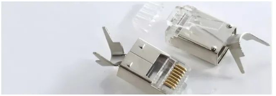 可以看到,七類網(wǎng)線水晶頭,帶有金屬屏蔽外殼。因為7類線采用的是單對屏蔽,然后再總屏蔽的結(jié)構(gòu),所以七類水晶頭是帶屏蔽的,夠更有效消除線對之間的串?dāng)_。