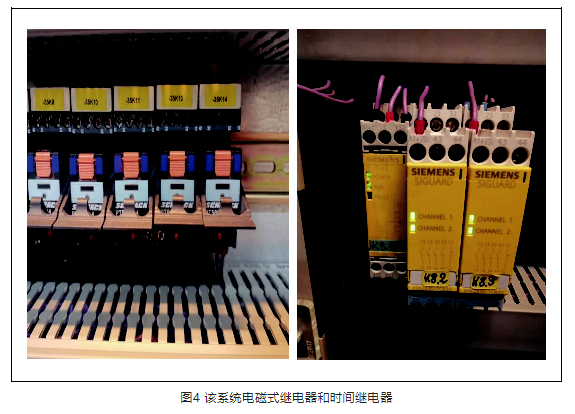 在舞臺(tái)機(jī)械電氣控制系統(tǒng)中,繼電器是其中必不可少的部件。繼電器的種類很多,通常分為保護(hù)繼電器和控制繼電器兩大類。該系統(tǒng)曾發(fā)生因繼電器損毀致使轉(zhuǎn)臺(tái)不能轉(zhuǎn)動(dòng)的故障。該系統(tǒng)的電磁式繼電器和時(shí)間繼電器見圖4。