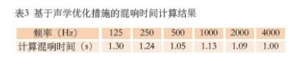 基于裝飾做法,初步計算的混響時間如表2所示。從表2可以看出,混響時間偏低,這會導致音質非常干澀,缺乏豐滿度。